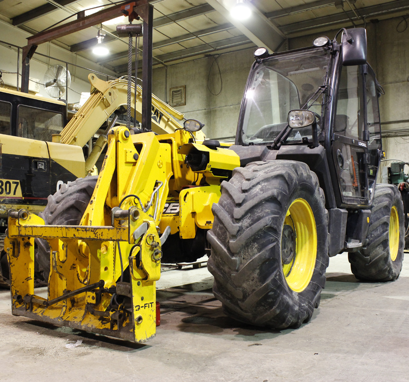 Enclosed cab, 41' stage boom, forks, 4 cylinder diesel engine, hydraulic tilt carriage, 8,000 lb carry capacity, 4x4, can reach places you need to go. Sold as is.